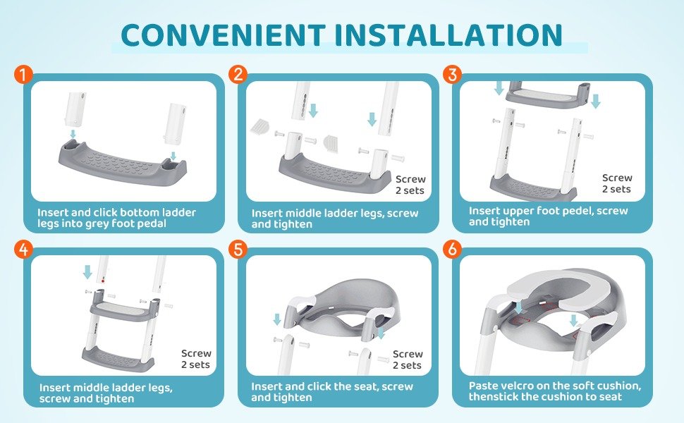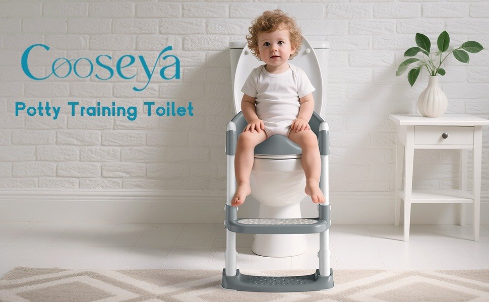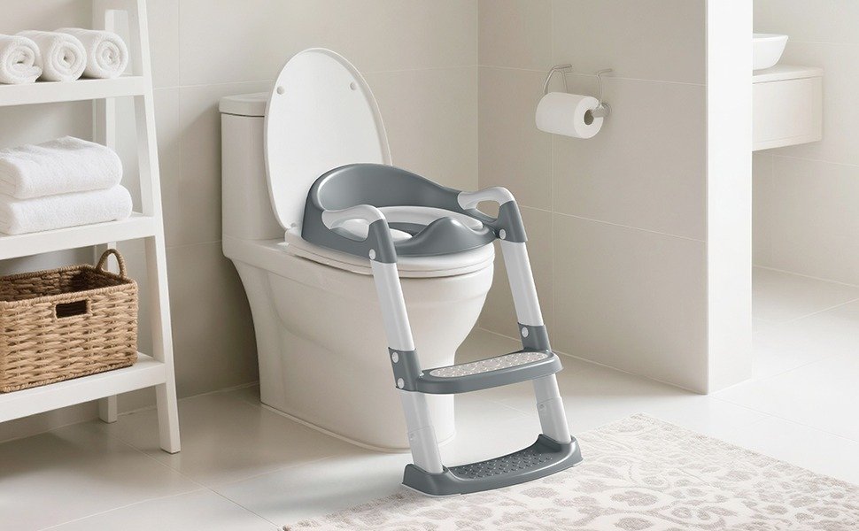 Potty Training Toilet with Step Stool Ladder, Toddler Kids Potty Training Seat for Boys Girls, Foldable Anti-Slip Toilet Toddler Seat Splash Guard Soft Cushion Safety Handles